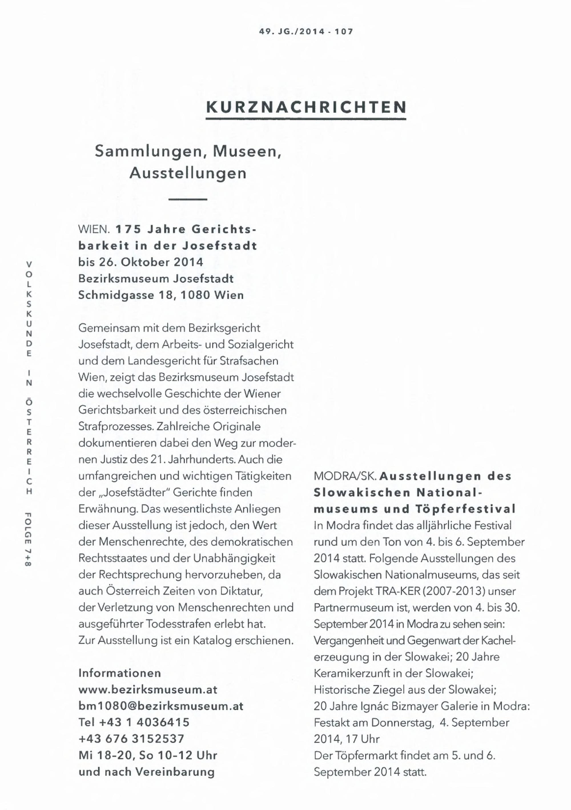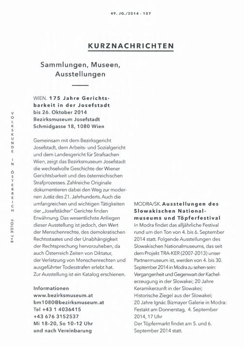 49 (2014) / Nachrichten. Volkskunde in Österreich
