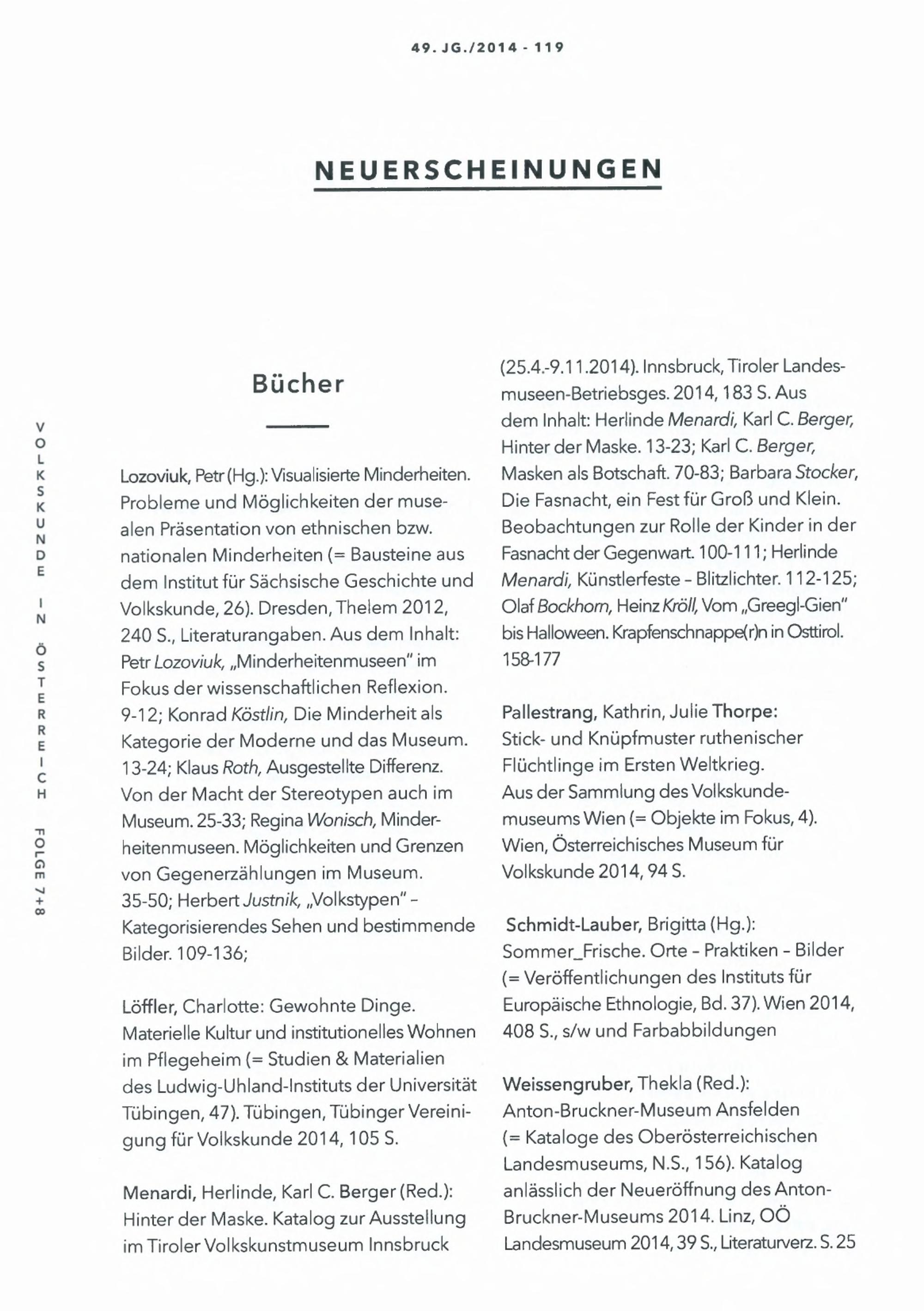 49 (2014) / Nachrichten. Volkskunde in Österreich