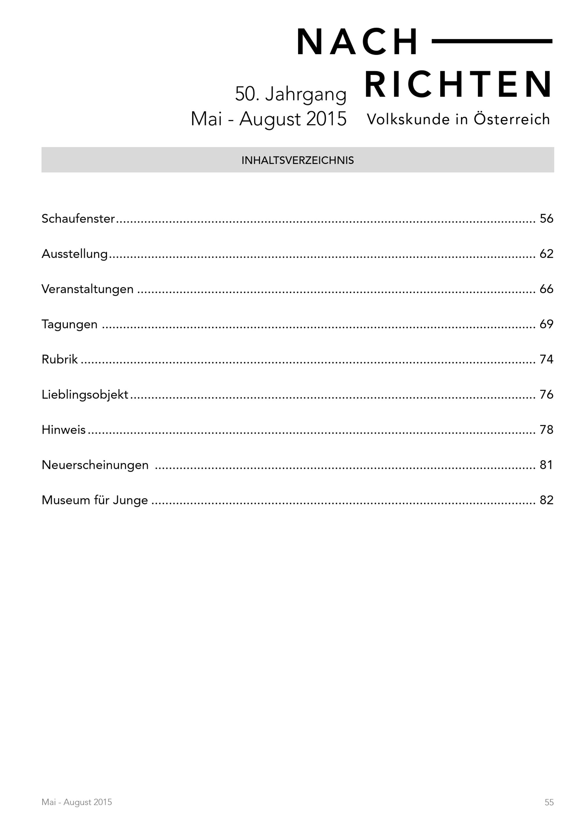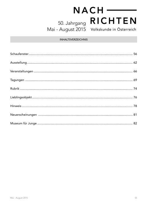 50 (2015) / Nachrichten. Volkskunde in Österreich