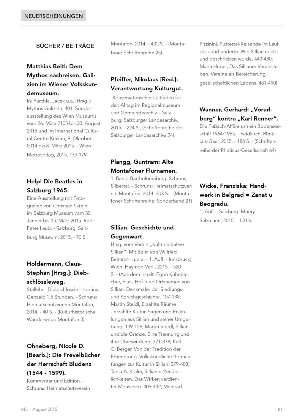 50 (2015) / Nachrichten. Volkskunde in Österreich