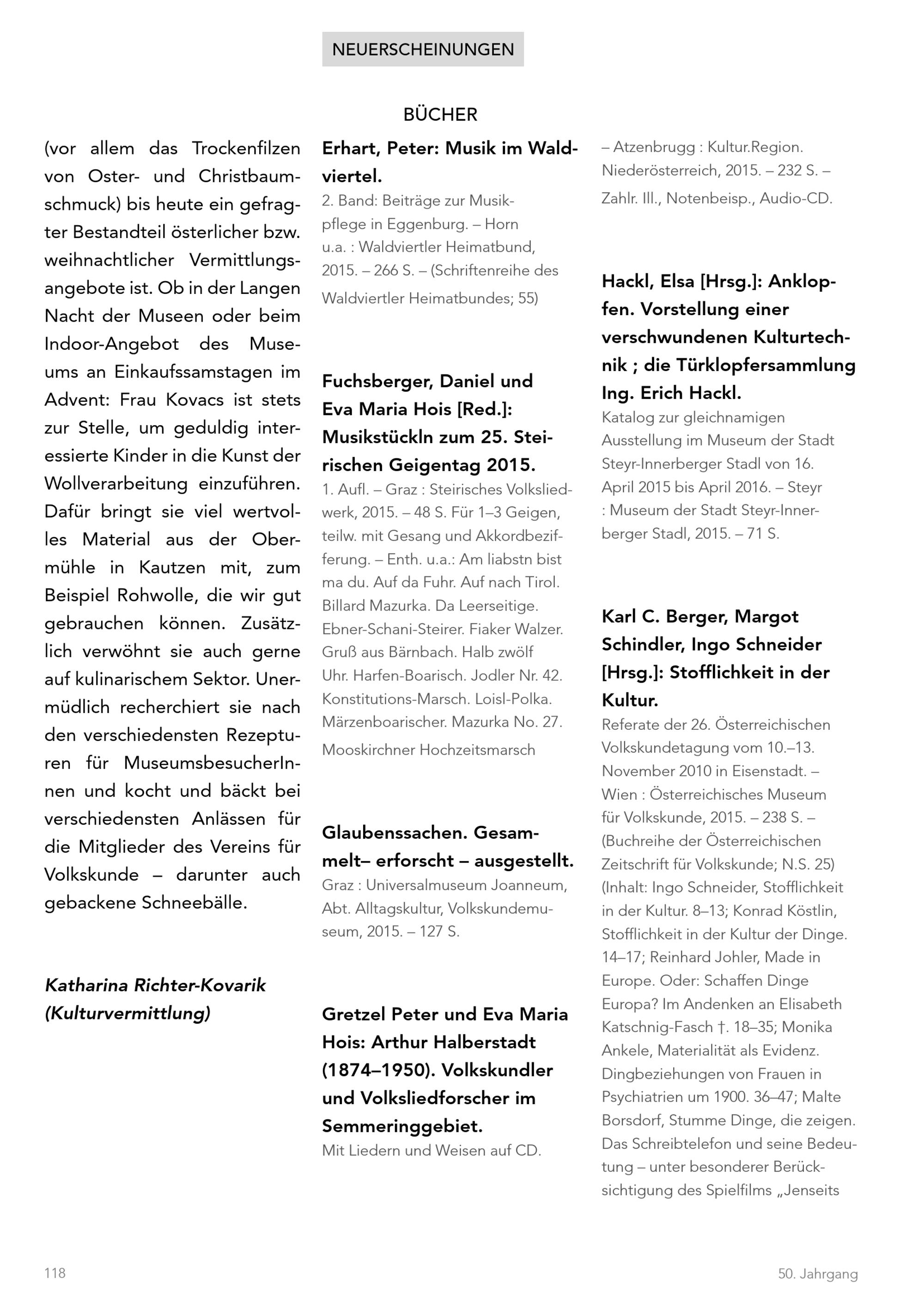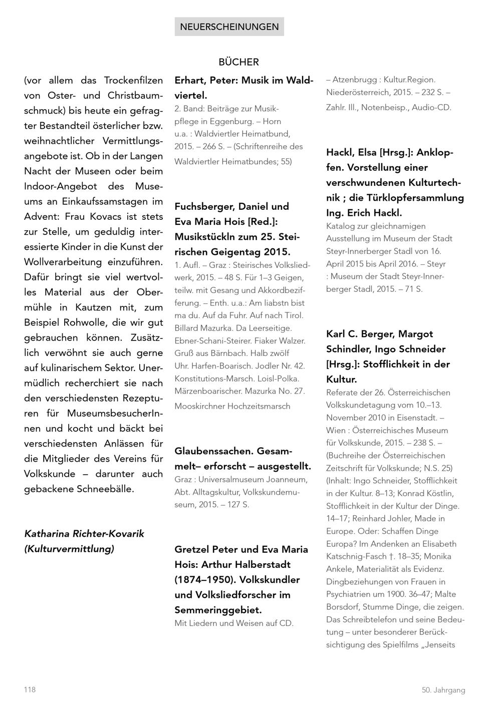 50 (2015) / Nachrichten. Volkskunde in Österreich