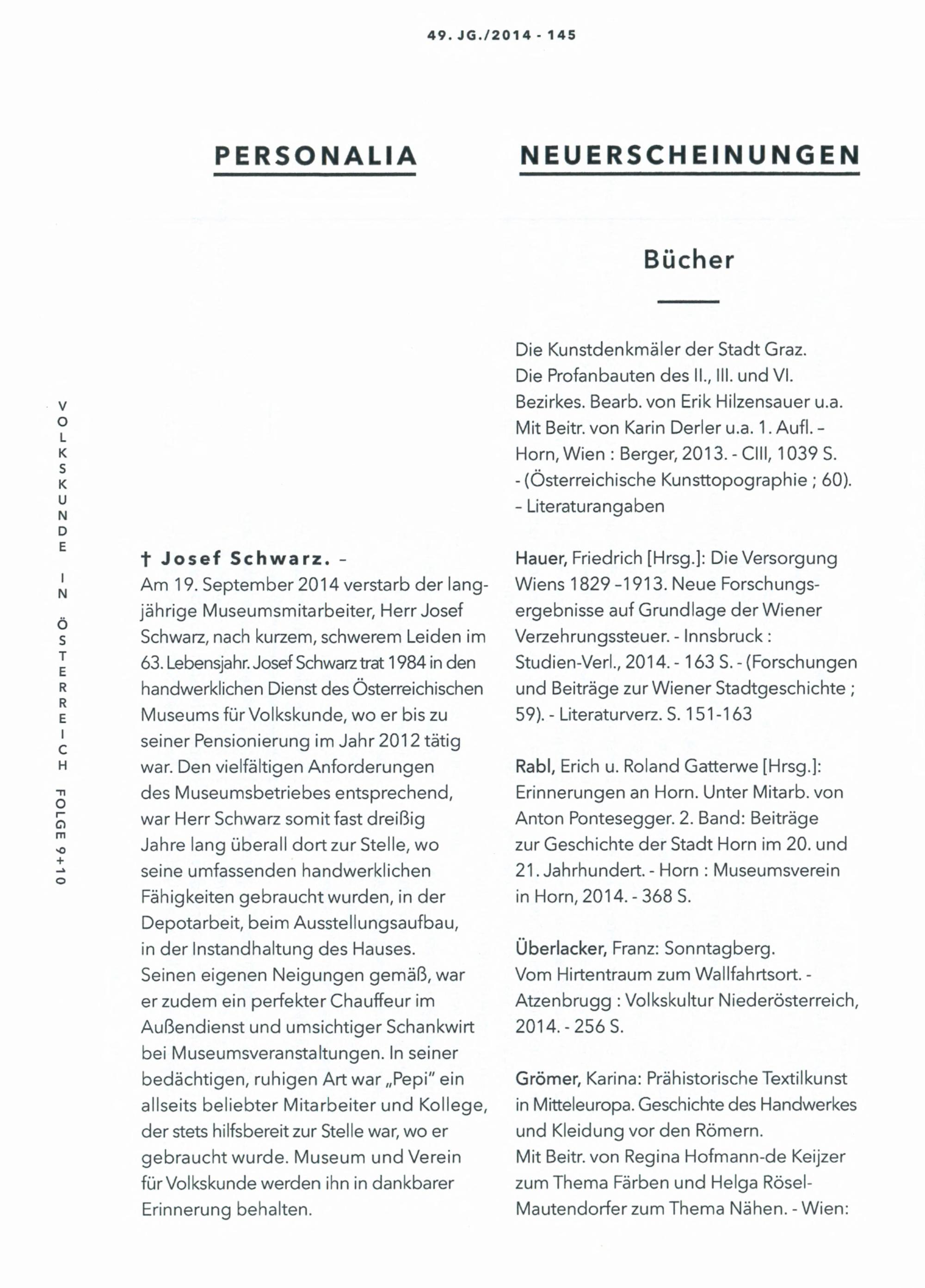 49 (2014) / Nachrichten. Volkskunde in Österreich