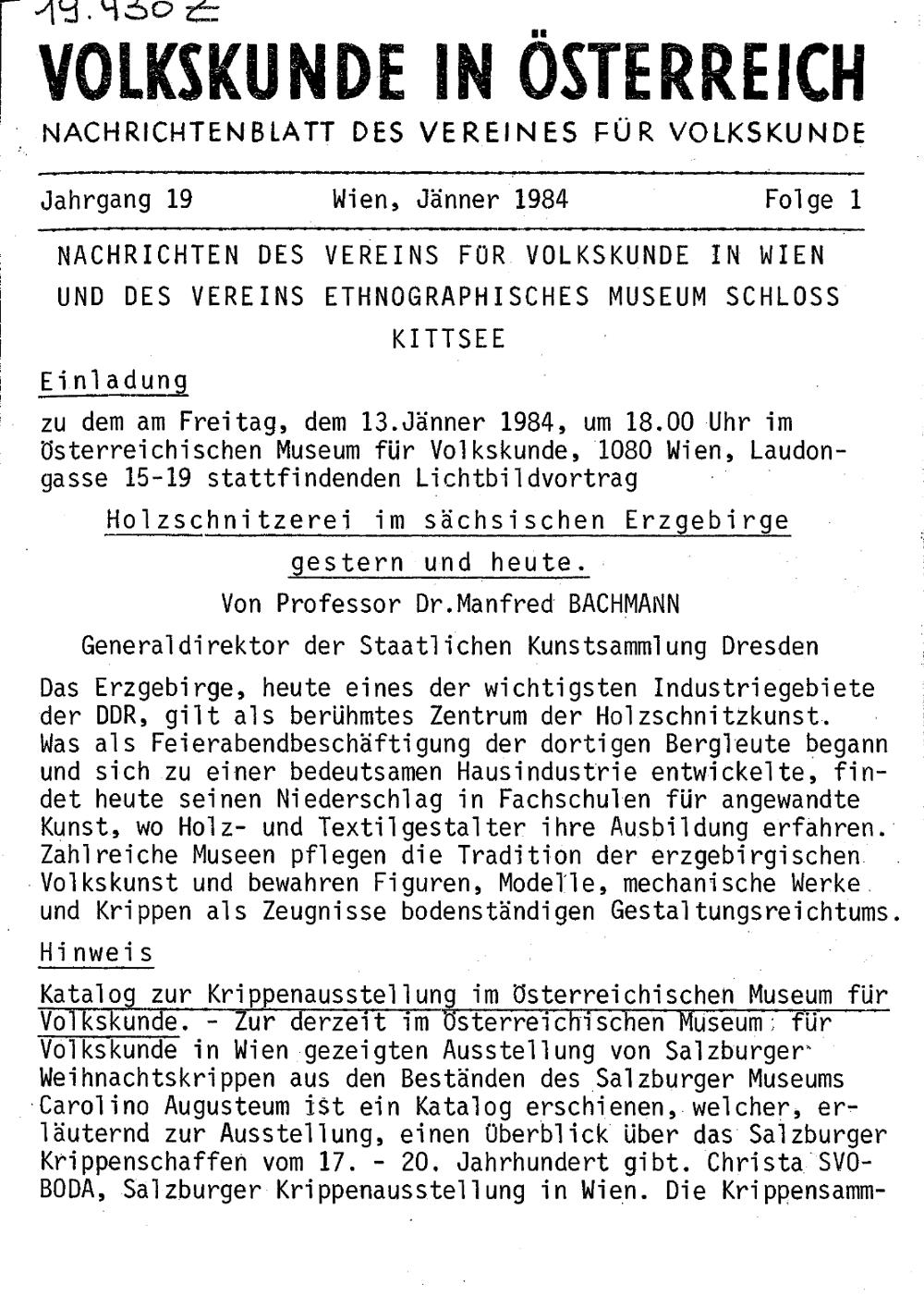 19 (1984) / Volkskunde in Österreich VIÖ